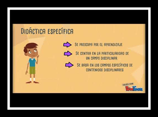 • 7 Didáctica específica: También  conocida como didáctica especial. Aquí se desarrollan planes de estudios en función del contenido que se pretende abordar para la obtención de un determinado conocimiento.