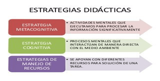Son acciones planificadas por el docente con el objetivo de que el estudiante logre la construcción del aprendizaje y se alcancen los objetivos planteados. Una estrategia didáctica es, en un sentido estricto, un procedimiento organizado, formalizado y orientado a la obtención de una meta claramente establecida. Su aplicación en la práctica diaria requiere del perfeccionamiento de procedimientos y de técnicas cuya elección detallada y diseño son responsabilidad del docente. Implica: